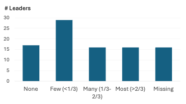 More than half of the responses were that None (11) or Few (42) MBBs had distanced themselves from the church while remaining strong in their faith (see Figure 6 below). A minority in our survey, 30% of the leaders, indicated that Many (22) or Most (6) had remained strong in their faith even if they distanced themselves from the Church.