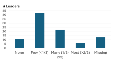 More than half of the responses were that None (11) or Few (42) MBBs had distanced themselves from the church while remaining strong in their faith (see Figure 6 below). A minority in our survey, 30% of the leaders, indicated that Many (22) or Most (6) had remained strong in their faith even if they distanced themselves from the Church.